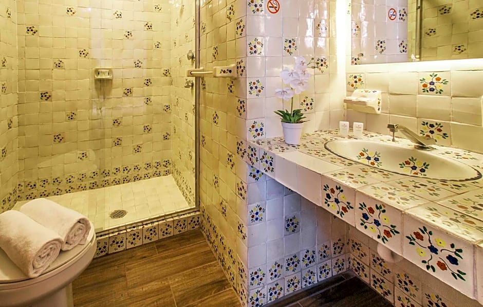 This room features Talavera tiles details, 32-inch flat-screen TV, work desk, private bathroom with a rain-shower and free toiletries, fan, wardrobe and electronic lock.